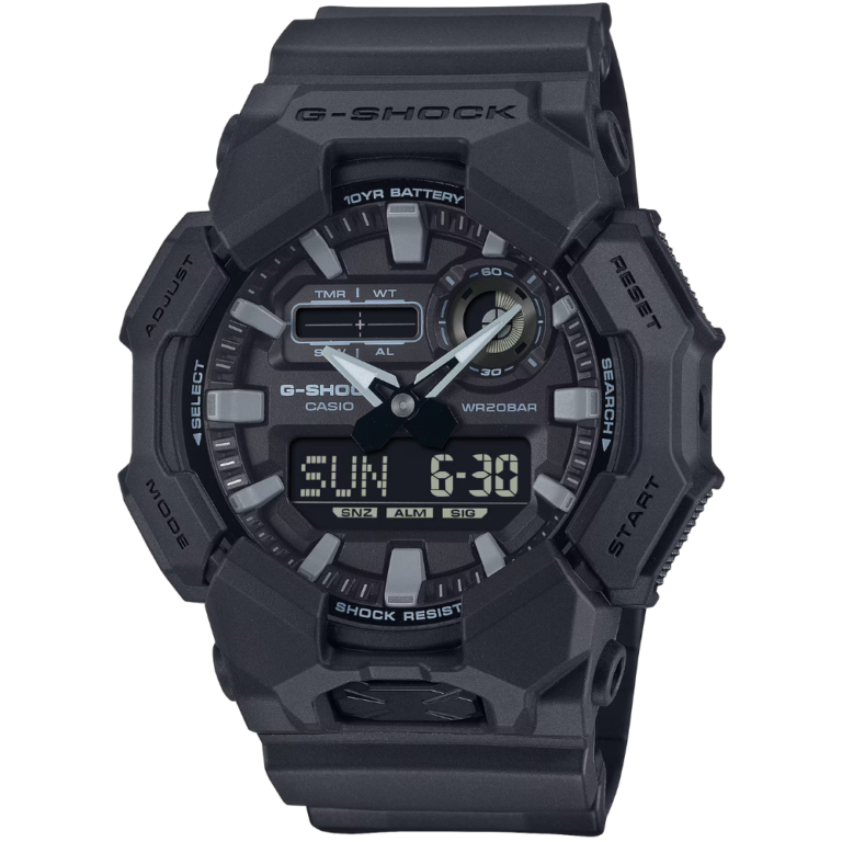 G-SHOCK muški digitalni satovi napravljeni su tako da se mogu uklopiti u sve. Čvrsti, vodootporni, otporni na udarce i još mnogo toga, digitalni satovi G-SHOCK za muškarce nude izdržljivost u klasičnom stilu. Bilo da ga želite nositi u uredu, tokom Vaše sljedeće avanture ili svakodnevno, čeka Vas novi G-SHOCK sat. Satovi Casio G-SHOCK su sinonim za otpornost. Sat je prepun Casio inovacija i tehnologija kako bi se spriječilo da doživi direktan šok; to uključuje unutrašnje komponente zaštićene uretanskim i suspendovanim modulima zadržavanja vremena unutar strukture sata.